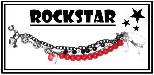 ROCKSTAR CHARM BRACELET! (: (SOLD!) This is super cool please. Hahaha, Check-like designed polymer clay beads. Red and Black combinations of colours. I've inserted 2 teardrops, one pink one clear, and an oval prism. (: my apologies on the prism picture. thats the best i could do. Jet black chains and a cute perfume charm! (: 4 layer charm bracelet. (: Black rhodium chains and findings! ONLY ONE AVAILABLE!