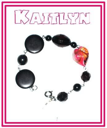 I used a heart focal clay bead made by Adeline. I also used a round and a teardrop prism. (: Others are black beads, and black coin disc beads. One off no remakes! (: