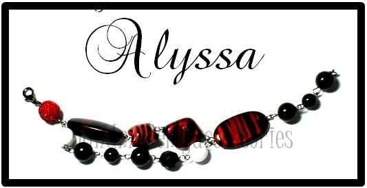 Alyssa consists of black, red and white beads. With a clay pillow made by Adeline. And one anna sui inspired rose bead.