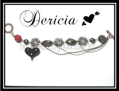 I used Antique Red rhodium materials, and included some antique red filligree and a black puffy heart and some brown beads and a red anna sui inspired rose with silver and black rhodium chains.