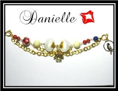 Danielle consists of white shells beads, cream beads, red beads with gold linings and blue beads with gold linings
