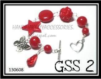 GSS 2 Charm Bracelet! (SOLD!)Consists of red beads, teardrop, heart toggles and a butterfly charm!