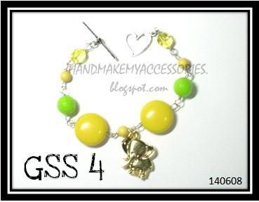 Consists of neon green and bright yellow beads, heart toggles and an elephant charm!