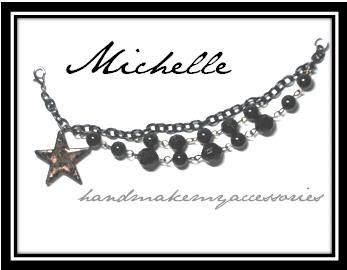 Rhodium clasps, findings, black beads, black chain, lampwork glittered star!