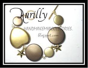gold and brown metallic coloured beads, a star charm, gold toggle closure, gold tarnish resistant wires!