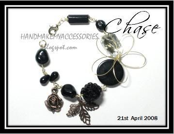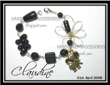 Materials used are tarnish resistant wires, my wired flower, cute elephant charm black Onyx (the one in square shape), czech glass beads, black beads, and black glass beads.