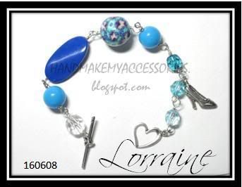 Consists of unique design blue floral bead, heart toggles, faceted hues of blue beads and a heels charm, blue solid colour beads!