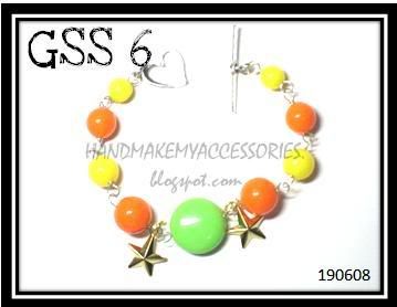 Consists of bright lime green, yellow and orange beads, heart toggles and a stars charm!
