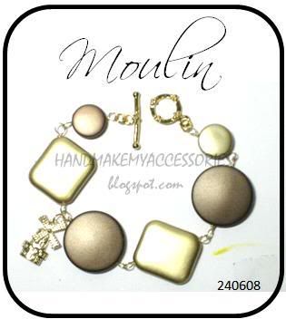 Consists of metallic beads of classy brown and gold, chunky style, and a moulin rouge charm!