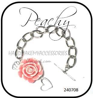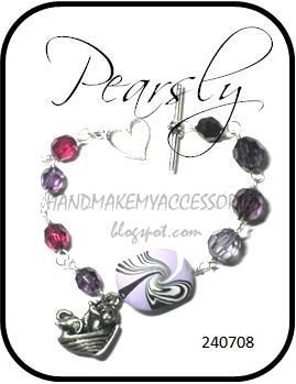 My handmade flower wirings, with silver rhodium heart shaped toggles and a handbag charm! (: